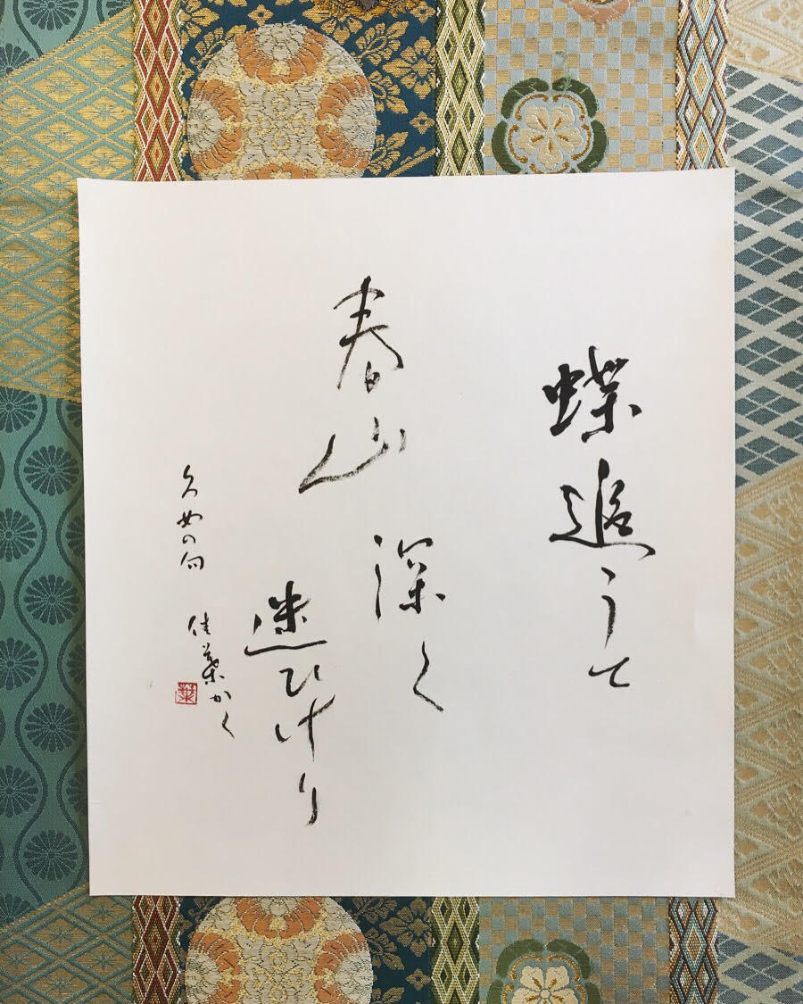 家から見える阿蘇の山々も緑が濃くなり、散歩途中の桜の蕾も少し色づいて春の息吹が感じられるようになりました。 春らしい杉田久女さんの句を色紙に書いてみました。
